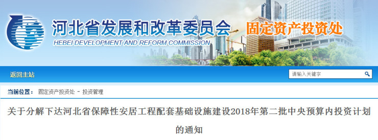 近日,省发改委、省住建厅下发《关于分解下达河北省保障性安居工程配套基础设施建设2018年第二批中央预算内投资计划的通知》,我省6市及雄安新区获批中央预算内投资27.533亿,其中雄安获批22.8亿。