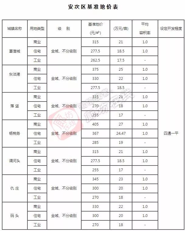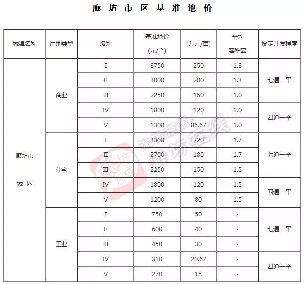 下面分别是:廊坊市区、广阳区、安次区较新基准地价,快看看你家多万元一亩?